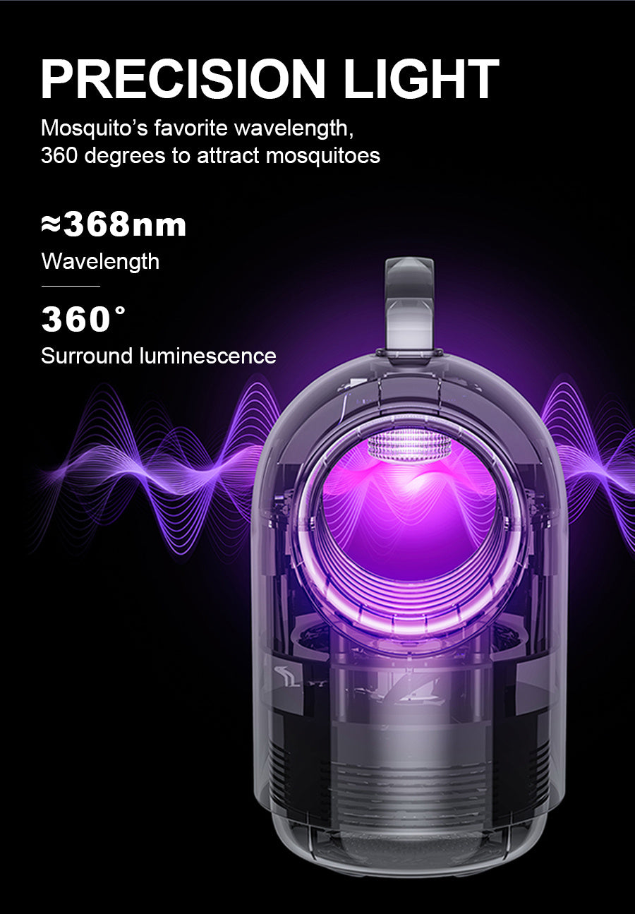 Keep your home peaceful and pest-free with the Household Indoor Mosquito Repellent, designed for quiet, efficient, and eco-friendly insect control. Using 368nm ultraviolet light, it effectively attracts mosquitoes, flies, and other small insects from all directions with its 360° surround lighting system. Once trapped, insects are securely collected in the high-density mosquito storage bin, preventing escape and ensuring long-lasting effectiveness — all while operating at an ultra-quiet 32dB, so your sleep and relaxation remain undisturbed.